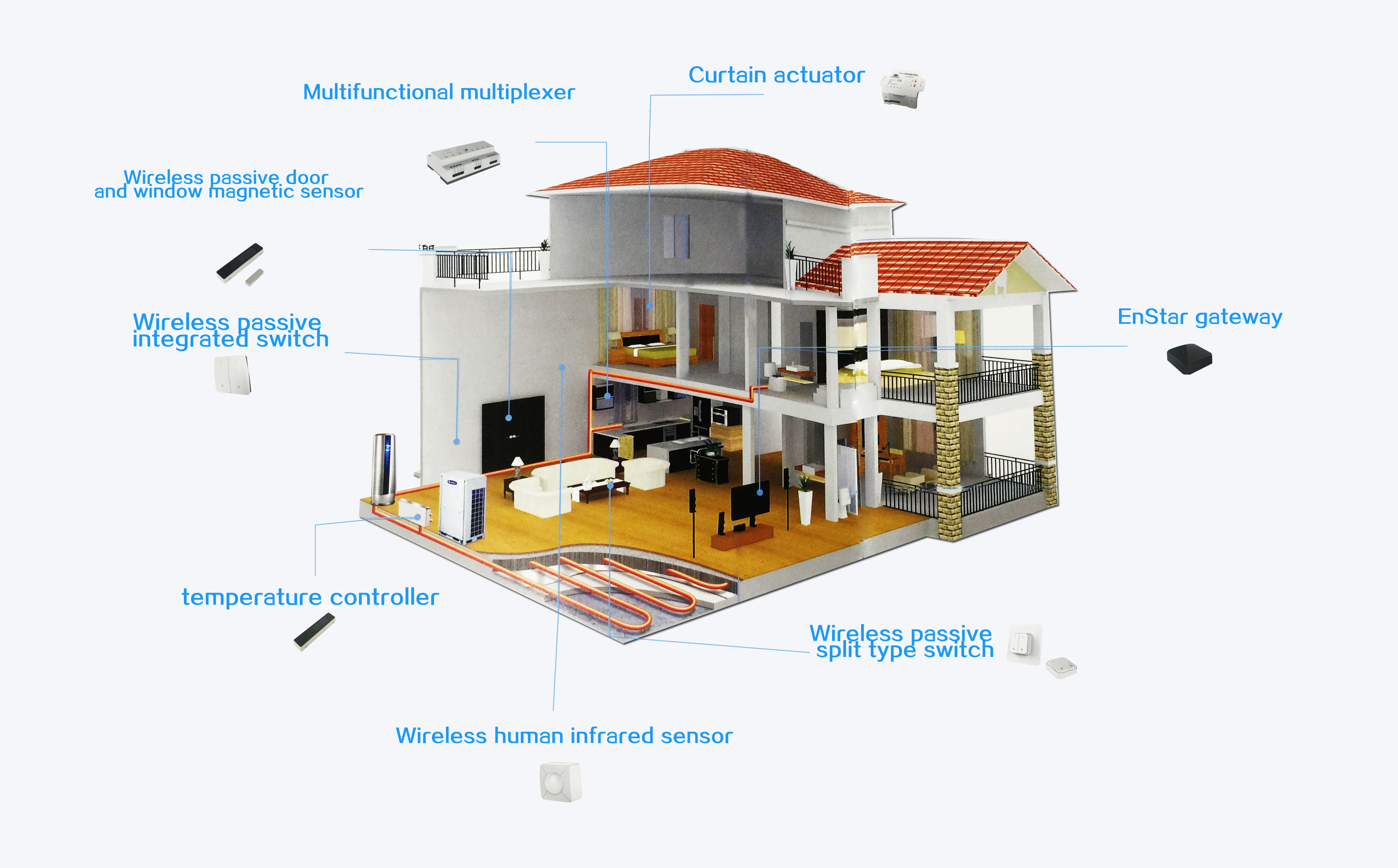 Compared with similar technology, EnStar technology has low power consumption and long transmission distance, Can network and support relay and other functions. Through mature, comprehensive opening The environment, strong technical support and product compatibility, allow existing buildings Existing products in automatic control and smart home industry become "green, energy saving, environmental protection" And maintenance free "Internet of things" new products.
